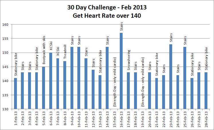 In February (technically only 28 days) I wanted to do something related to fitness. I love quantifiable goals and I have a habit of collecting gadgets so I decided to commit to measuring my heart rate while exercising and getting it above 140 every day (my Zoladz zone-4 “tough exercise” is roughly 140-150). Here are the results…