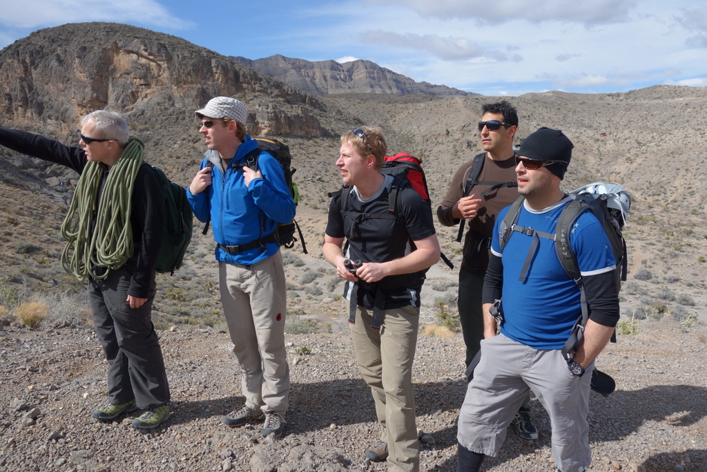After five hours walking in the desert and scrambling up a narrow slot canyon in search of the climbing area we decided to make it a hiking day. Climbing could wait for another day. Turns out that when we turned back we were no more than a few minutes away from finding the crag.