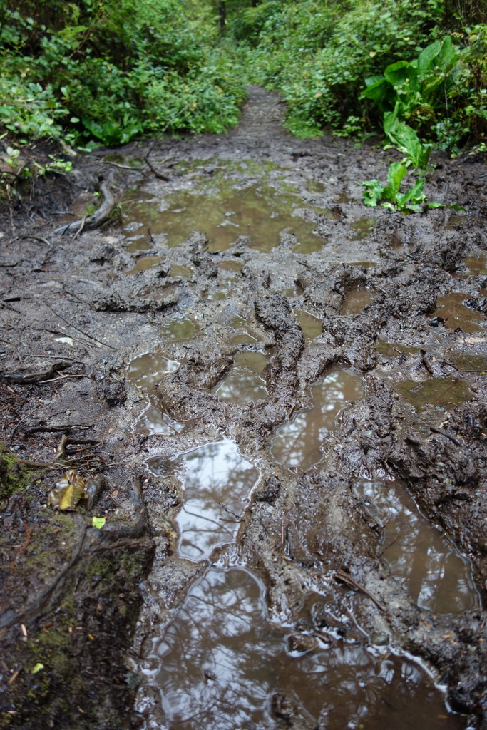 The rain starts again. It’s soft at first, just a drizzle. I like it. I meet a group of three Americans on the trail, heading the same direction as me. They all have huge packs and they plunge deeply into the mud with each misstep. I ask them how they’re doing. They respond “surviving”. Despite being from Seattle, the rain gets to them. “We get rain too, but we stay inside!” I kind of envy the epic journey they’re having. Kind of. They let me pass by and we wish each other well. I think that’s the last I’ll see of them. But I’m wrong.