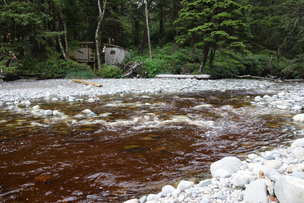 It’s immediately beautiful. Waves crash into the soft sandy shore. Birds dart through the dense forest, singing to their mates. There’s a pungent aroma of salt and seaweed. The couple have stopped at a creek at the far end of the beach to filter water. It’s a deep brown, almost the colour of beer. They load up on as much water as they can carry. They already have 60 lbs packs. I skip the creek. I have no water at all and I carry no more than half a liter for the entire trip. There’s water everywhere. Every 10 minutes you cross a rushing creek. When it rains, as it does almost constantly, the path itself becomes a stream.