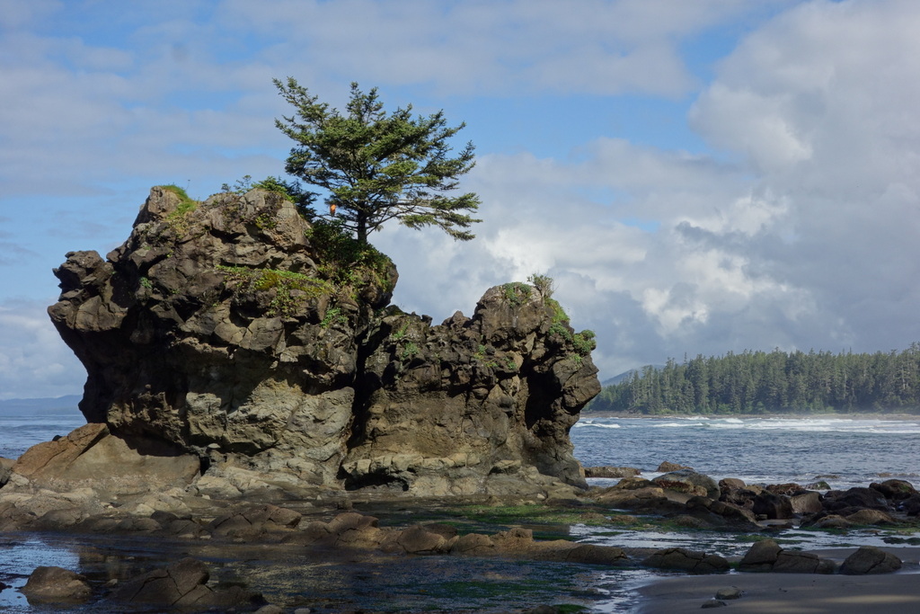 Just before Tsocowis Creek I was enjoying a walk along the sandy beach when I saw two people in the distance frantically waving their arms. I slowed down, trying to understand what they were doing. It seemed strange. They were standing still, packs off, but shaking their arms rapidly. Suddenly I saw it — two black bears! I stopped immediately. Motionless. But the bears seemed completely unconcerned as they slowly meandered over logs and through bushes. In fact, they looked down-right soft and cuddly. Small too, perhaps yearlings. After a few minutes they disappeared into the forest without a sound.