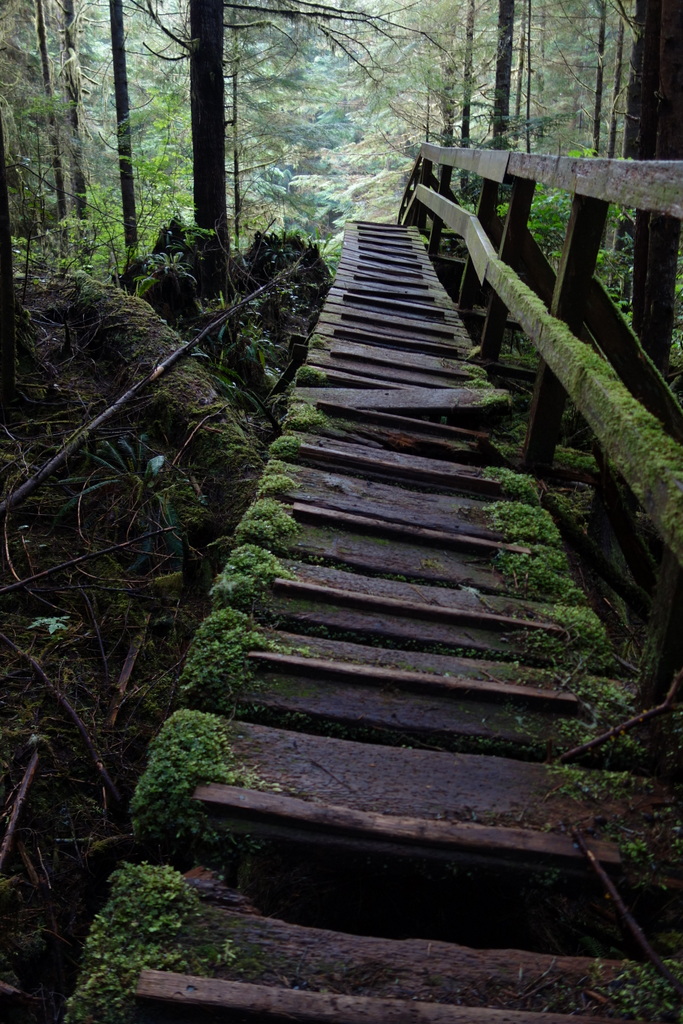 The bus departs at 6am sharp. All the windows are fogged over but I continuously wipe them down to reveal the sharp lights of downtown Victoria passing by, then soggy suburbs, then deep green forest. After two hours we stop at Port Renfrew. This is the southern end of the trail. Everyone I meet tells me this is where you should start so that you get the most arduous hiking out of the way first. One hiker, a Dutch expat working as a baggage handler at the Vancouver Airport, departs. I continue for another 4 hours to Bamfield.