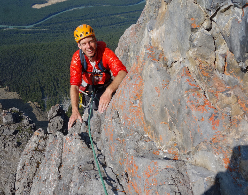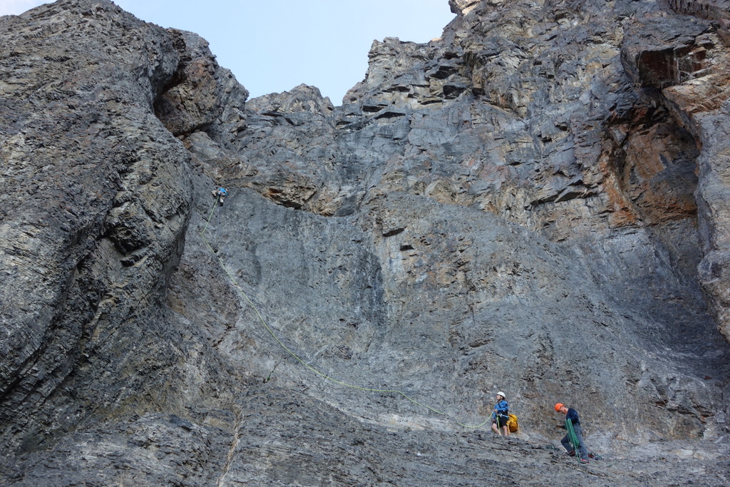 Technically, the climb is quite easy. The hardest pitch is only 5.6+ but this is a real alpine climb and it’s fairly committing. Bailing on the route requires a series of awkward rappels off fixed bolts.