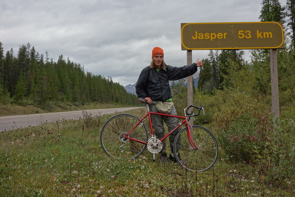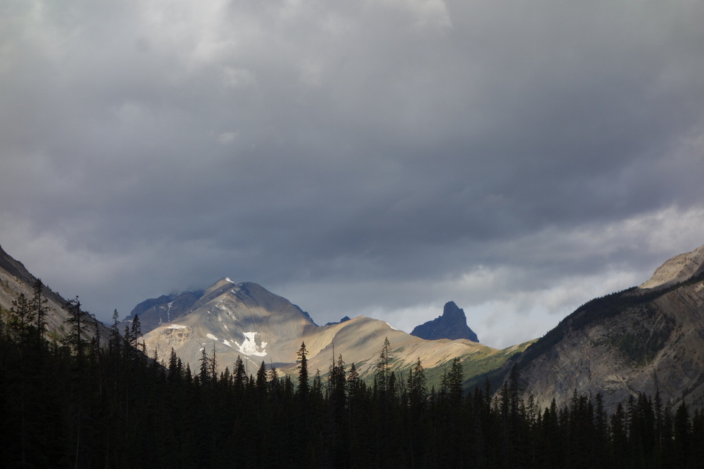 We’re rewarded for all our hard work over the last few days with a mostly downhill ride all the way into Jasper. It’s sprinkling rain much of the day but the road is fast and it feels great to zoom effortlessly along.