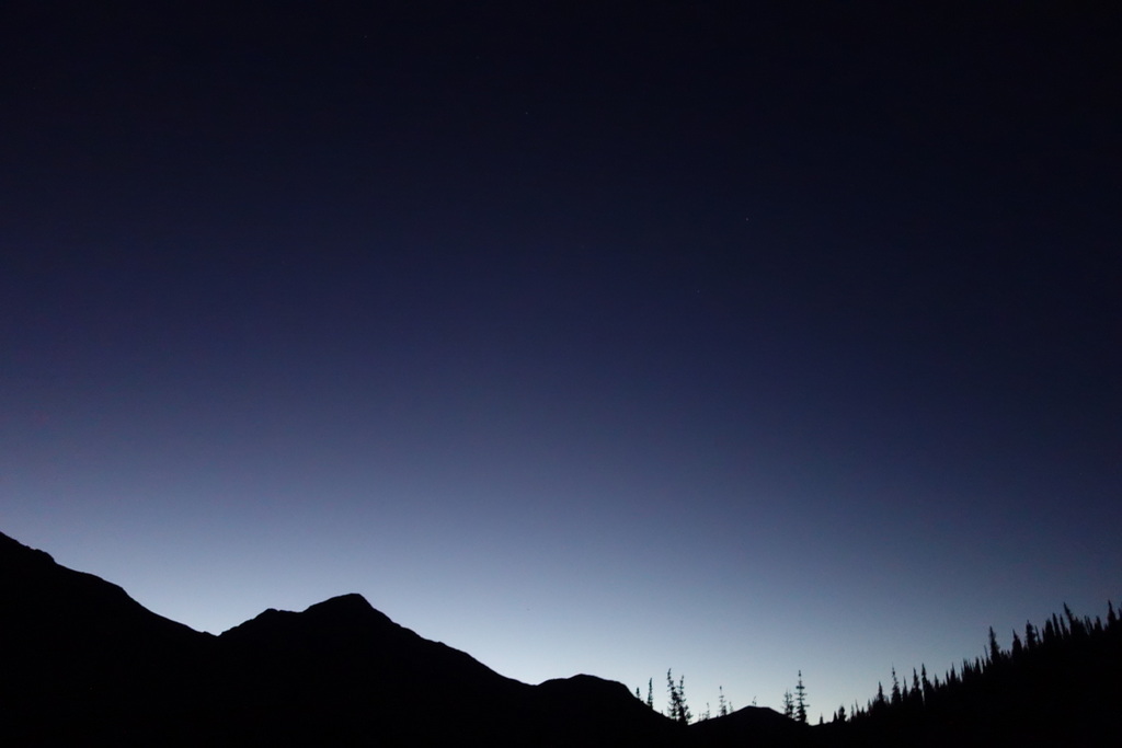 We pass by a few small berry bushes scattered alongside the trail. I stop and pick a few. Suddenly, there are berries everywhere! They are big and plump and ripe. I have to push loaded branches away from the trail to avoid staining my clothes with berry juice. I pick so many that my tongue almost goes numb from the acids. Next morning’s oatmeal breakfast is the best I’ve ever had: a cup of cereal, 1 liter of huckleberries.