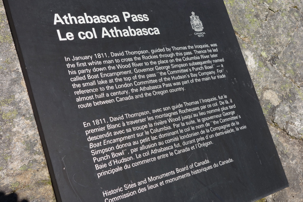 In 1811, explorer David Thompson went in search of a new route across the high Canadian Rockies. Hostile Peigan natives blocked Howse Pass (which now connects Mistaya Canyon with Golden) and the North West Company, for which Thompson worked, desperately needed an alternate route to ship furs across the mountain range. In January of that year, braving -30 temperatures, five meter deep snow, and perilous river crossings, Thompson reached Athabasca Pass. This route, connecting the Athabasca River (which flows out to the Arctic Ocean) and the Columbia River (which reaches the Pacific), became the main artery for shipping furs across Canada until the 1850s.