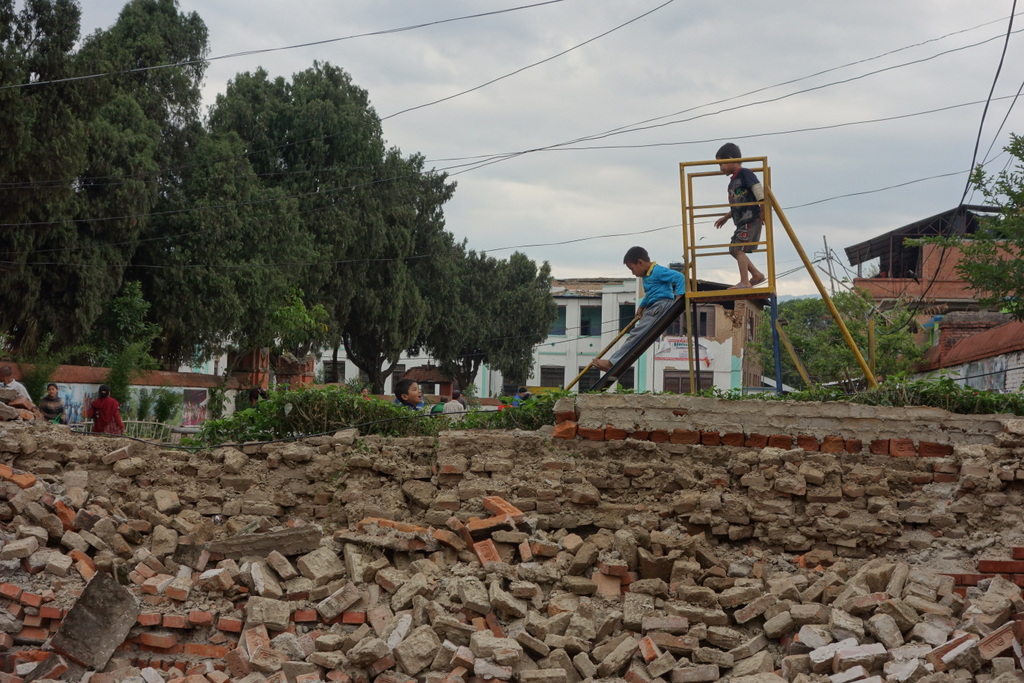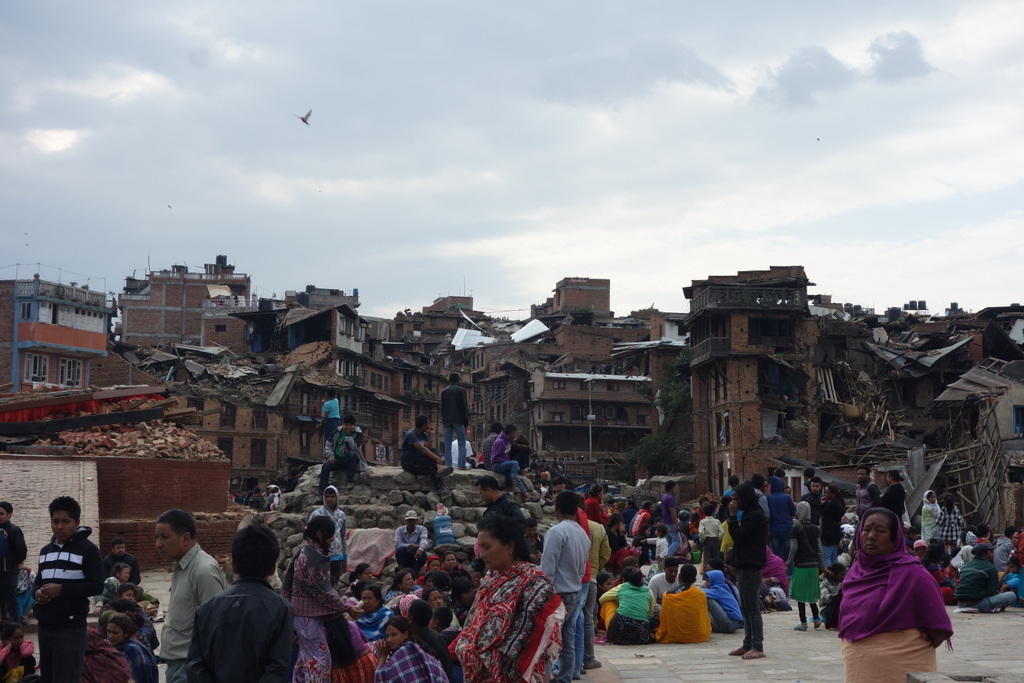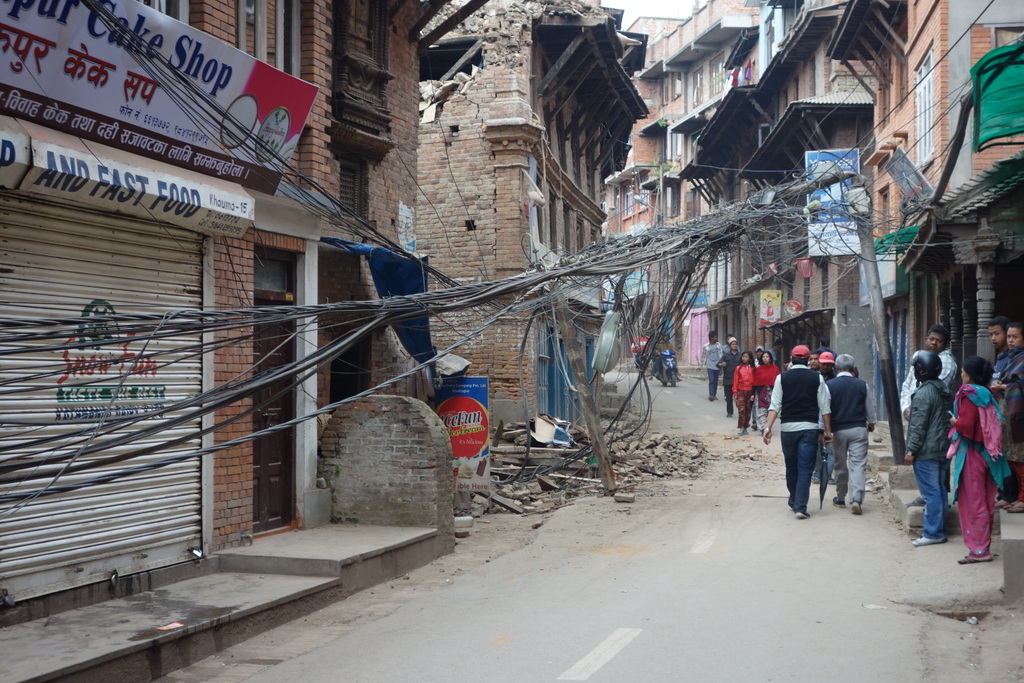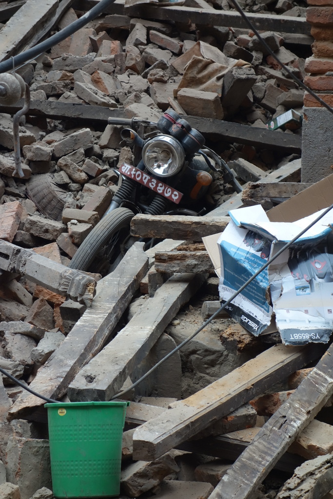 Getting to our guesthouse became top priority. Our passports were there and we had a flight out in a few hours (we hoped, anyway). I managed to find my way through piles of rubble, moving quickly past buildings that looked as if they could collapse at any moment and ducking under a mess of potentially live wires. Luckily, there was no apparent damage to the building. When we chose it the day before we thought it rather lacking in character but now we were very happy to have chosen a newly constructed building. I managed to find a much safer way back, returning to Charles and Sil who waited amongst the crowds.
