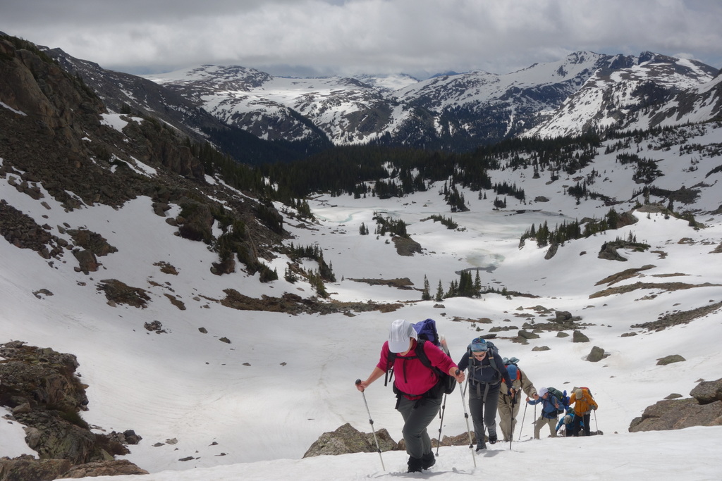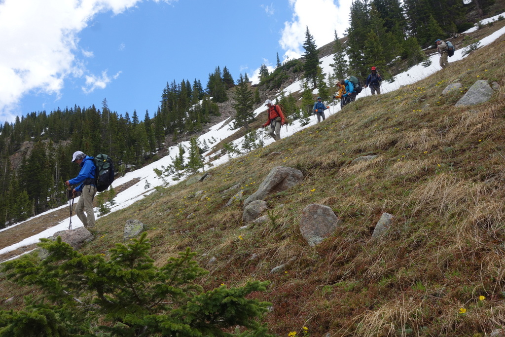 Day 2, 5:00am – I wake up with a startle to a huge boom of thunder! Colorado gets frequent afternoon thunderstorms but this early morning wake-up call was rather unexpected. Our objective for the day was to adjust to the altitude and to get above snow-line where we can practice off-trail navigation.