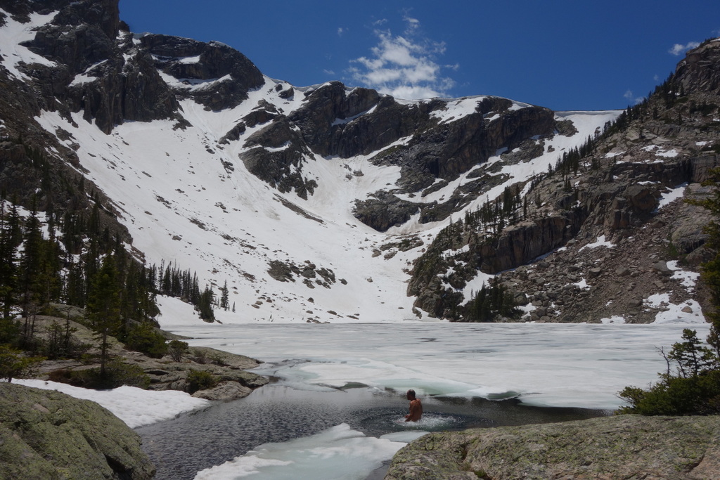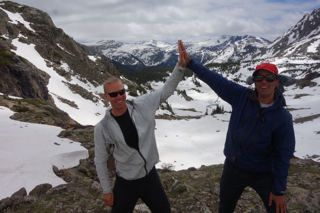 The hardest part of the day wasn’t the climb up but the descent back down. The steep trail switch-backing down to North Inlet was still covered in snow, forcing us to kick steps and carefully avoid slipping. It probably wasn’t as bad as it looked but the snow added an element of challenge that pushed all of us clients a bit out of our comfort zone. This is where Andrew and Brian’s experience really stands out. They remained fully confident, picking a safe and quick route down the slope.