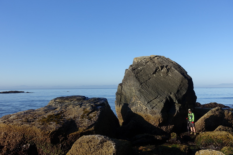 To continue from Camper Bay to Walbran Creek, one normally takes the inland trail. Michael and I decided to try walking along the beach. The perfect weather, unusually dry conditions, and agreeable tides convinced us that this difficult and risky alternative was worth attempting.