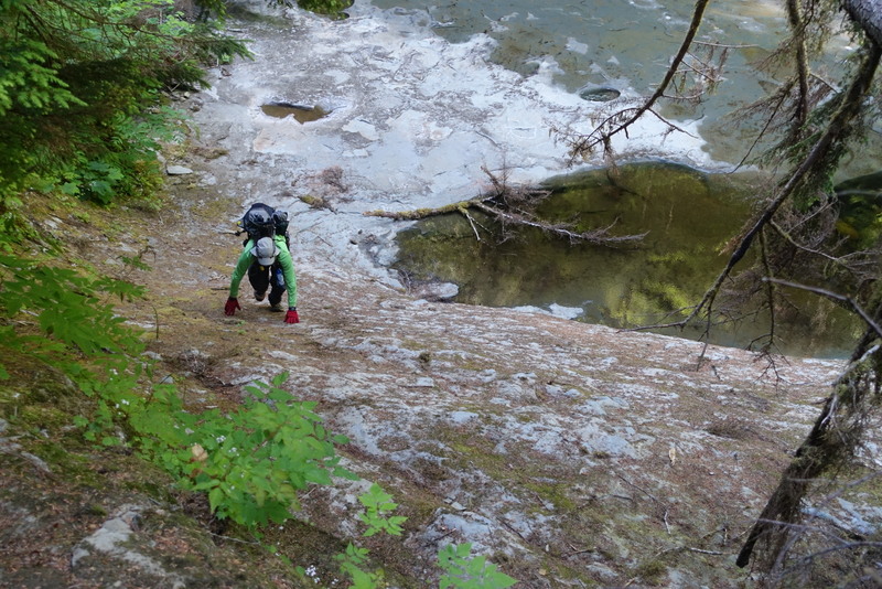 The tricky stuff isn’t over yet. There’s a slippery down-climb from the beach shelf to Sandstone Creek followed by an unbelievably slick expanse of rocks at the mouth of the creek. I must have nearly fallen a dozen times.