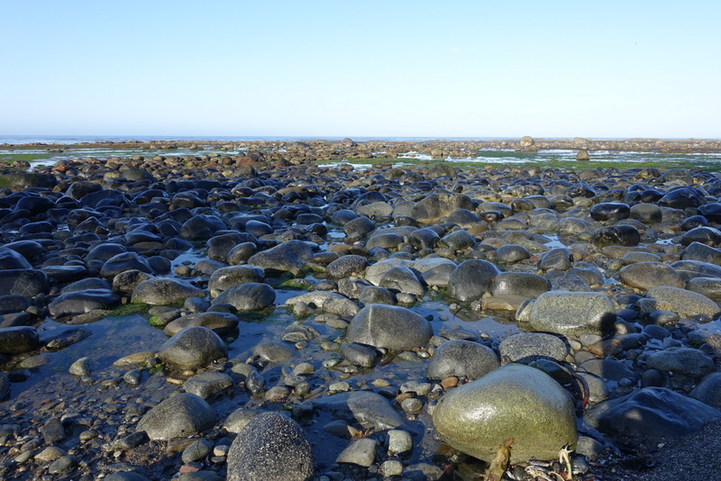 Almost immediately after leaving the Camper Bay campsite you come to a dangerous surge channel. You have to drop yourself down into it then climb back out. It’s filled with slimy slippery seaweed. I’d definitely not want to be anywhere near it at high tide. In fact this whole area is under water at high tide. If you’re thinking of trying this alternative to the inland trail, I’d only do it from the south. If you try it from the north and get to this surge channel and find it impassible, you will have to walk all the way back to your starting point, losing hours of progress and maybe even get trapped by the incoming tide.