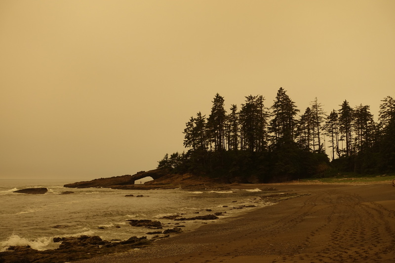 The weather throughout this trip was unusually warm and dry. During the day the sun shone strong and bright and the nights stayed very mild. This morning was no different. By 6am the sun was up and the heat of the day was upon us. Suddenly, however, the sky turned dark and red. It almost looked like a thunderstorm was about to hit. Yet, somehow it was different. An eerie red light made it feel like sunset had arrived – a sunset that lasted all day. Forest fire smoke wafted through the air. In the denser parts of the forest, it was so dark that it was hard to see!