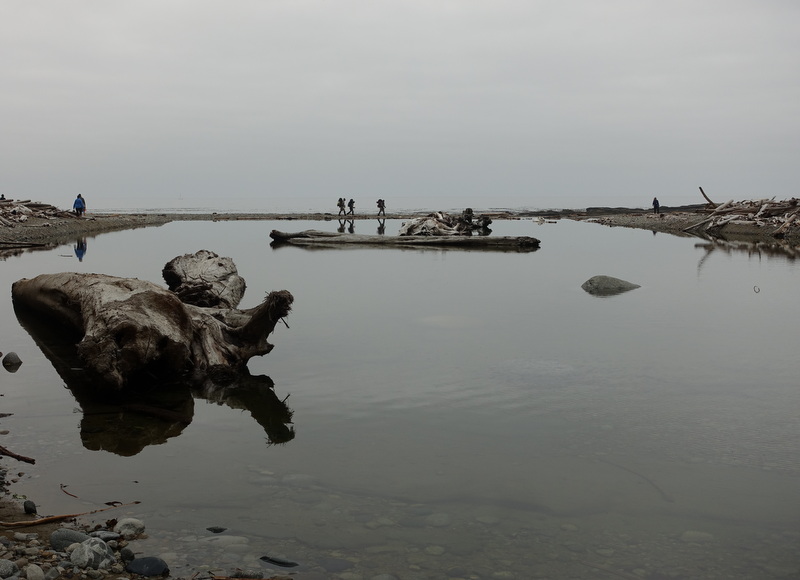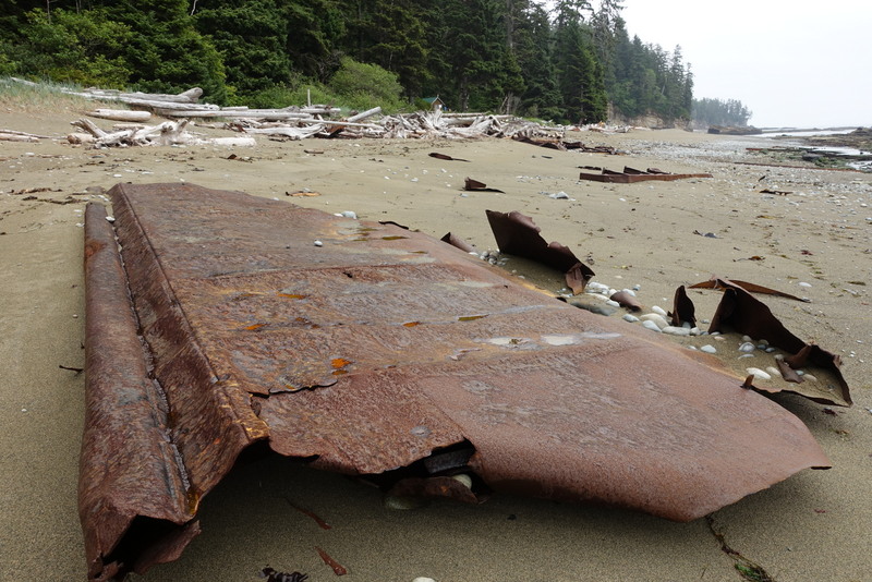 It’s another special day on the West Coast Trail. Why? Because we saw gray whales? Because they were spouting and diving in the distance? Because sometimes they even lifted their tails high above the surface for us to see? Well, yes, but it’s extra special because of the delicious freshly caught fish and lobster served up at the Nitinat Narrows ferry crossing by a fellow wearing a name-tag reading “Hippy Doug”. I was so hungry, I gobbled it up before I remembered to take a photo.