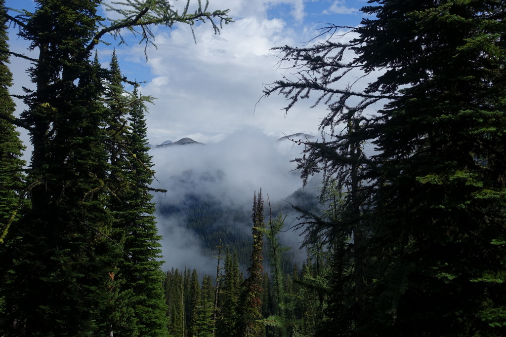 Just a short distance from the towns of Radium and Kimberley, I must have driven past Top of the World many times. About an hour’s drive further on gravel roads brings you to the park entrance. It’s an easy walk (or mountain bike ride) to Fish Lake where you’ll find a well-maintained cabin and campground popular with families. Just a little further up a steep trail is Sparkle Lake. When the sun hits the lake, it really does sparkle. We had exciting weather – a mix of rain, hail, mist, and brilliant sun.