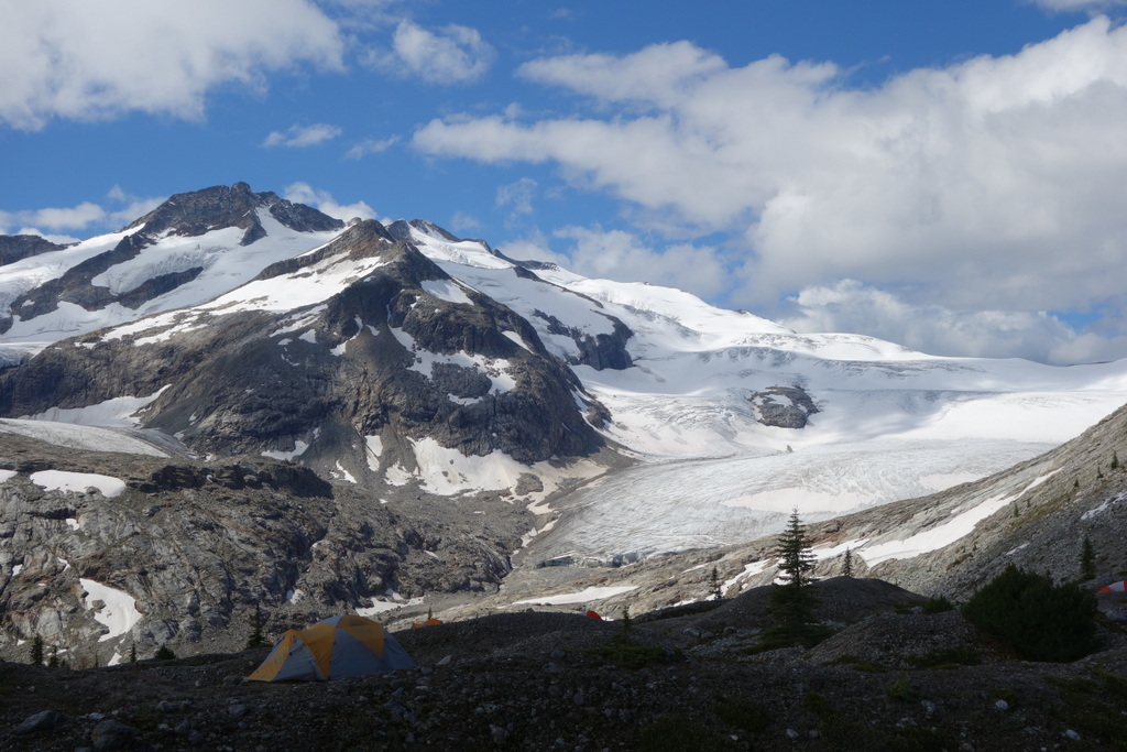 The camp runs for five weeks in 1-week blocks. Those who joined the first week were blessed (or cursed) with hot sunny weather. We heard stories of descending big glaciers through blisteringly hot sun. The braver folks stripped down to their underwear. Awkward sunburns were a common occurrence. The weather couldn’t have been more different when my group arrived in camp. Cold rain poured down. The wind whipped relentlessly. On our fourth day the rain turned to snow, sticking to the outside of my tent. It’s not everyday you get to experience a big snowstorm in late July!