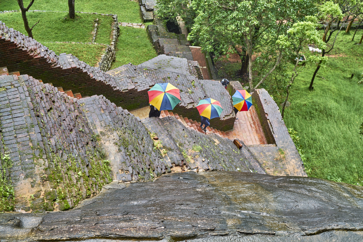 In the afternoon we visited Sigiriya, a massive 5th century rock fortress that towers above the surrounding jungle. Mist drifted by as we climbed the 300m of steep stairs leading to top. I can only imagine how elite the rulers who once commanded from this strategic post must have felt. They even built a large swimming pool at the top, replete with ornate statues and, no doubt, many servants.