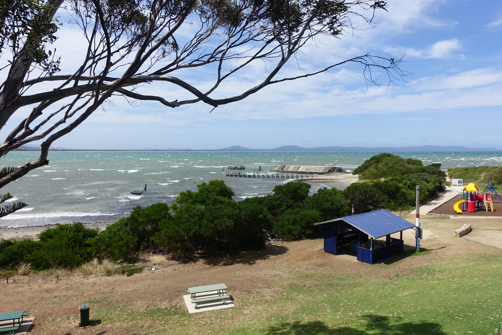 I relaxed in the shade for quite a long time after enjoying the wine tasting. Back on the road I found a strong crosswind that slowed me down. I’d been enjoying a tailwind earlier in the day but had now changed direction. Cycling along the beach it felt like being in front of a sandblaster.