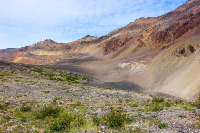 Yesterday’s muck was replaced with large blocks of unstable volcanic rock. Edziza is actually Canada’s highest volcano and its numerous eruptions (as recently as 1000 years ago!) have haphazardly spewed rock all over this landscape.
