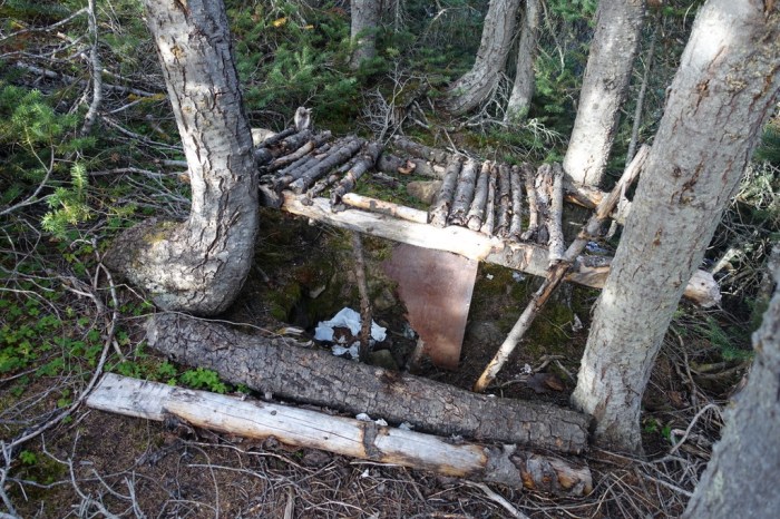 As we continued down the trail we stumbled upon something rather unexpected – a horse camp. This isn’t just any horse camp. After wild camping every night, we suddenly found ourselves sitting at a log picnic table with shelves to store our gear, tarps to keep us dry should it rain, and a mirror to make sure we look good. There’s even an anvil and a propane torch to fashion horse shoes. Talk about luxury.
