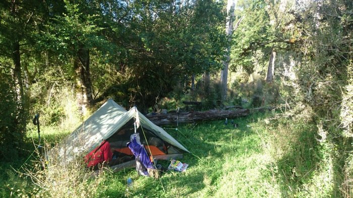 I’d love to stay at Goat Pass Hut one day. It has amazing views. On this day, though, it was packed, so we continued on and camped in the forest.