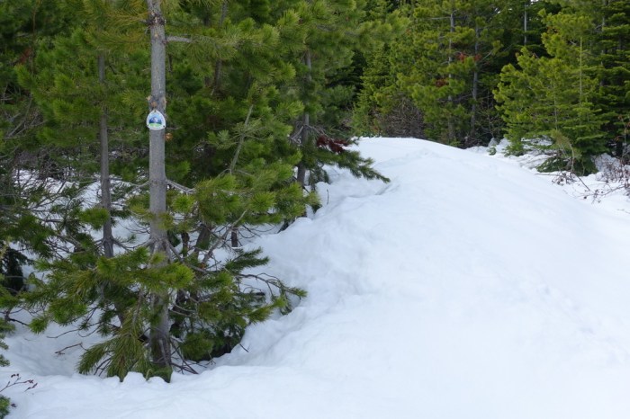 It didn’t take long to realize that I’m overly optimistic. There’s still lots of deep stuff, and not only up high. Even at low elevation I found myself postholing for miles, making what should be easy walking pretty challenging.