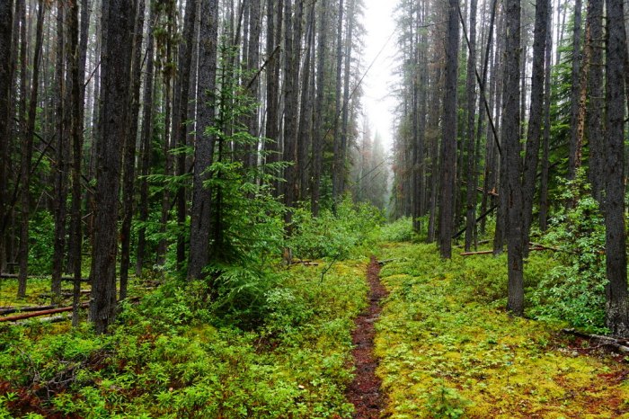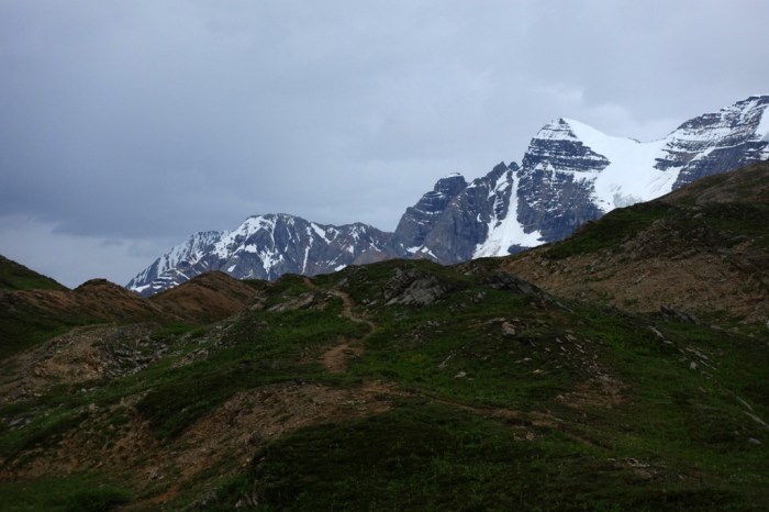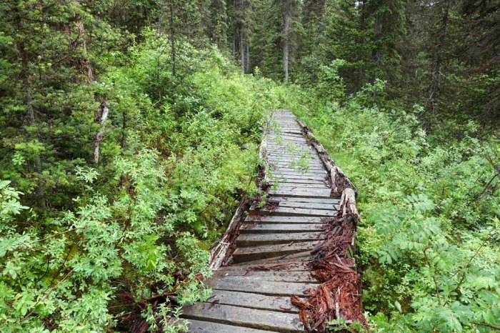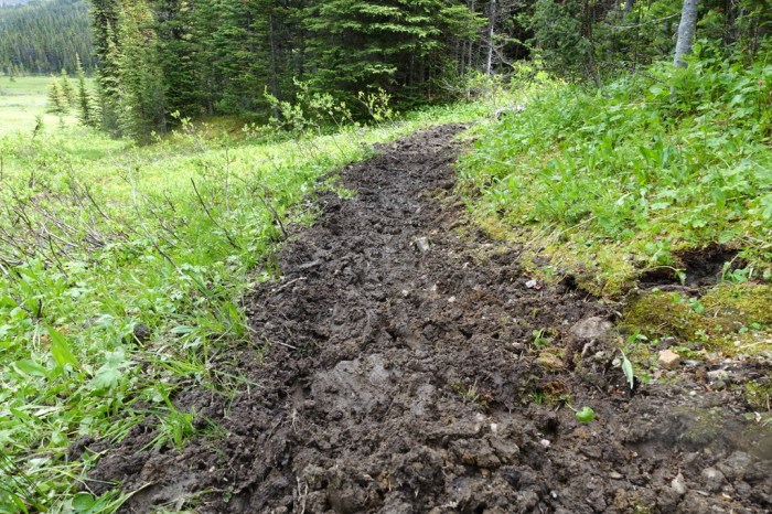 Honestly, though, I prefer it chilly and wet rather than hot. Crossing little bits of old broken boardwalk, rotting from years of rain and snow, made me feel like I’m entering into a more remote part of the GDT. North of Jasper, the trails don’t see much use other than horse trips and a few intrepid hikers.