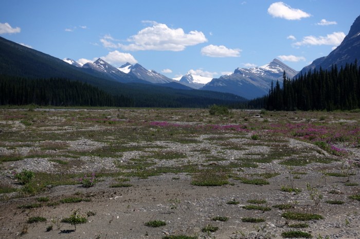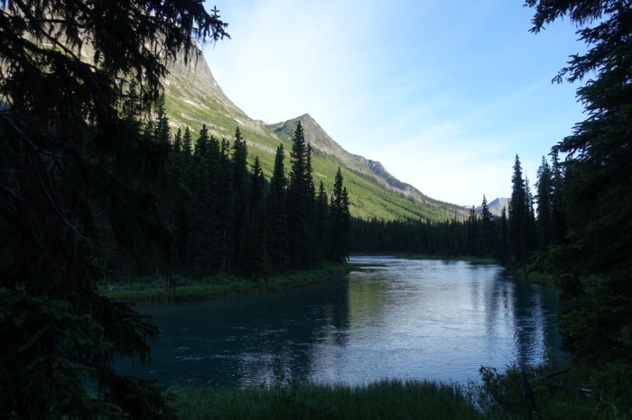 I figured if I arrived at Smoky River too late with water levels too high, I’d just make camp on the flood plain and wait until the next morning. Reaching the river at 9am, that would make for a pretty long day of lounging around, so I was quite happy too see that the river didn’t look too bad.
