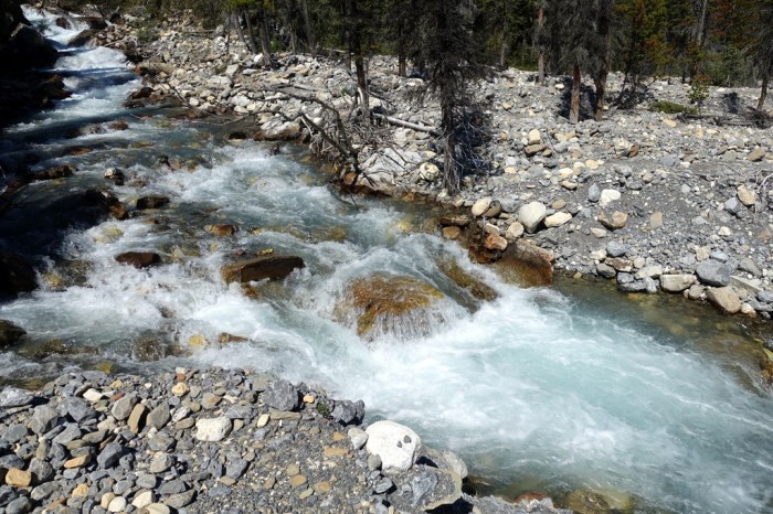 Wet walking on the Miette River trail