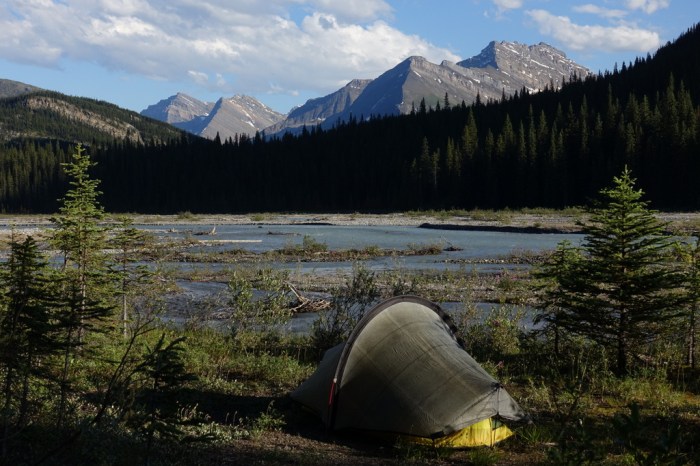 I had a nice break after crossing the Smoky River, contemplating my next stage of this Great Divide Trail journey. I was now at an important fork in the road: turn left and walk 28km out the Mount Robson trail to the traditional end-point of the GDT or turn right and embark on a very remote and challenging ~200km to Kakwa Provincial Park. I was originally planning on the shorter and easier option. My achilles tendon problems reinforced that idea. But my achilles has been bugging me less over the last week and I’m really keen to travel through such a wild place.