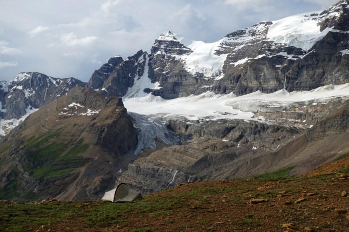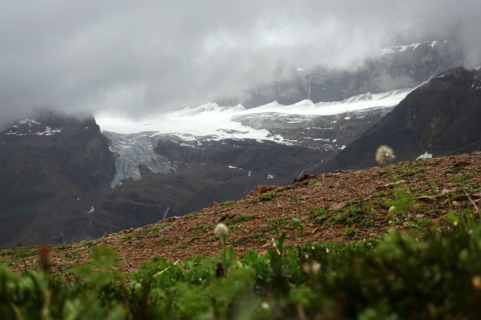 I awoke to a very different world. The sun no longer shone. I could no longer see grand, intimidating glaciers towering above me. Instead, fog and mist drifted up from the aforementioned quagmire of a valley below. I rolled over, deciding to sleep a bit longer, waiting for the skies to clear.