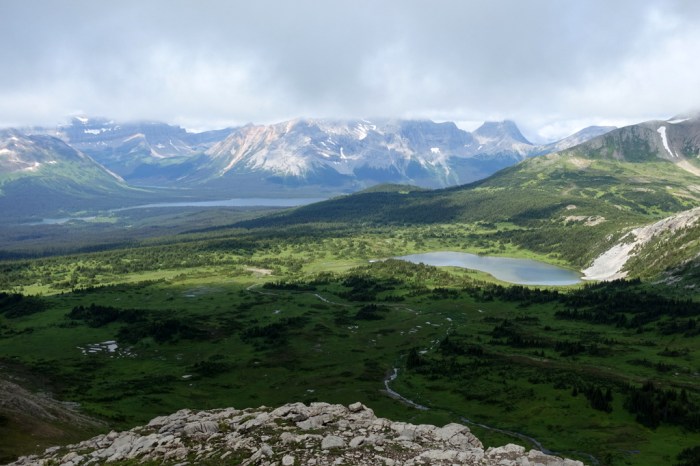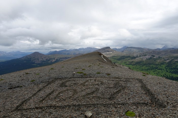 Further south, the Rockies are heavily glaciated. Up here, north of Jasper, it’s possible to stroll along the crest of the continental divide itself without running into technical terrain requiring climbing gear. Oh, the freedom to simply walk in such an amazing place!