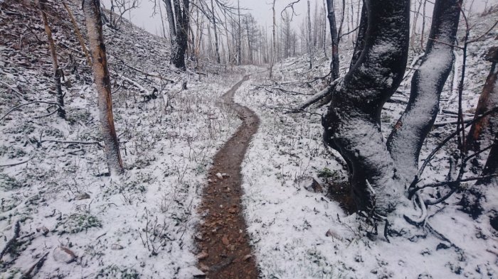 I started the trail unusually early. Late-June through July is generally considered a good time to begin. I set off a week before the end of May, basically as soon as winter conditions lessened enough that avalanche conditions were acceptable. All that snow made my experience of the GDT atypical. I wore snowshoes most of the first month and still sunk deeply into rotten snow. Road-walks that would normally be a breeze took me many hard hours. Sections of trail that are normally easy to follow required careful navigation with everything in sight covered in snow. On my hardest day, I only managed to walk 13.5 km in 10.5 hours. Such an early start also meant that I had the trails to myself. Most days I saw no other humans and even popular campsites were empty. I met only one other GDT hiker along the entire trail.