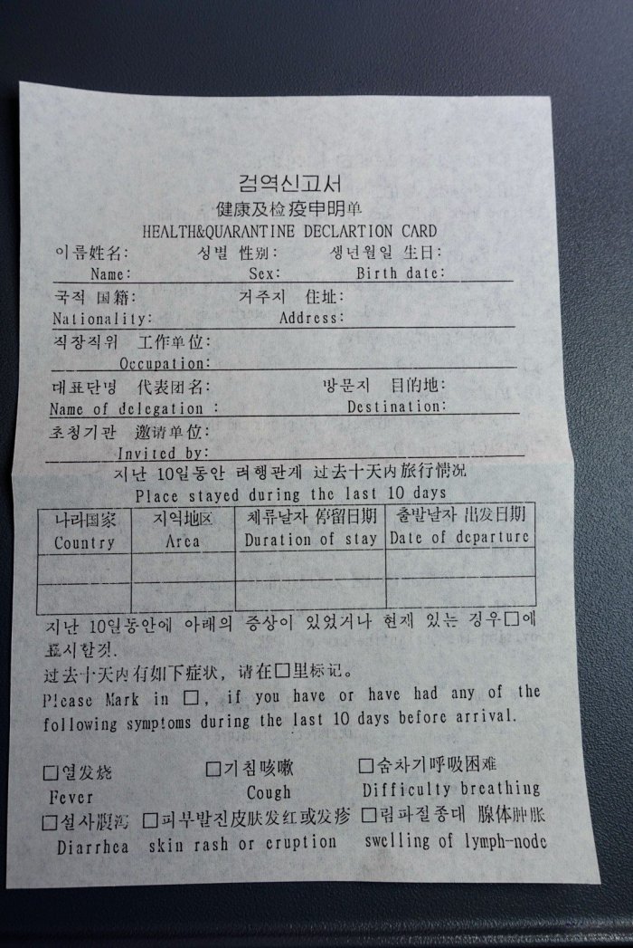 I was very surprised to see a rather modern large plane waiting on the tarmac. On my first visit to North Korea seven years ago, we flew an ancient Russian plane with big plush seats and tons of legroom.