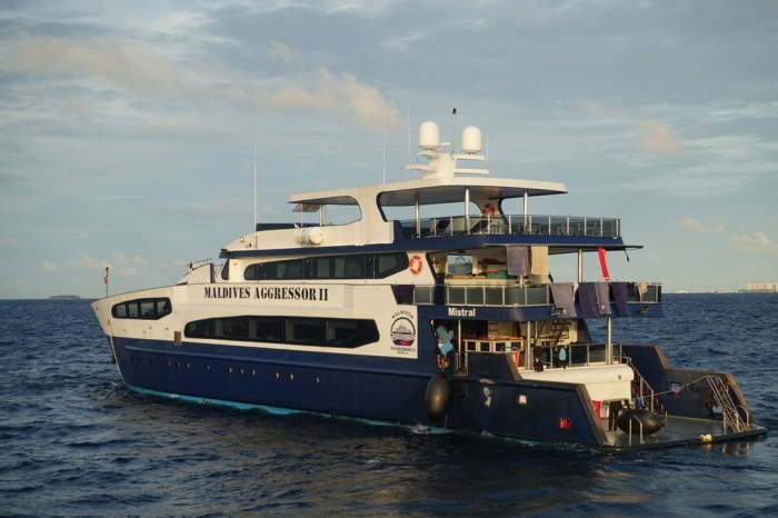 A live-aboard is a great way to visit dive sites that would take you a long time to reach from land. That’s especially true of the Maldives where staying on land probably means an expensive resort. The ship captain navigates to the next underwater wonder as you sleep in your cozy cabin.