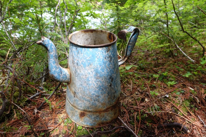Se puede descubrir mucha historia en los senderos canadienses. Encontré muchos artefactos a lo largo del camino mientras andaba. ¿Cuándo se usó esta tetera por última vez? ¿Hace cuarenta años? Pero los colores siguen siendo vibrantes.