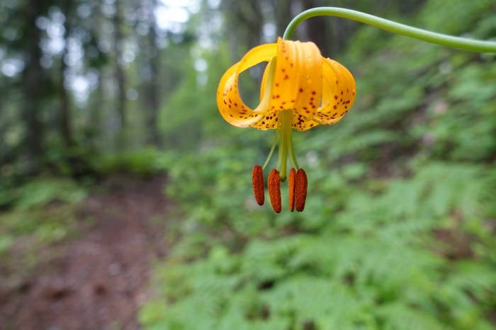 From nearly every campground there are trails heading up into the mountains. Even though it’s pretty relaxing just to hang out at the lake, it’s actually hard to see the impressive peaks in the distance, for the big hills in between. I was very happy to hike up into the hills, following trails adorned with deep-green moss and delicate spring flowers.