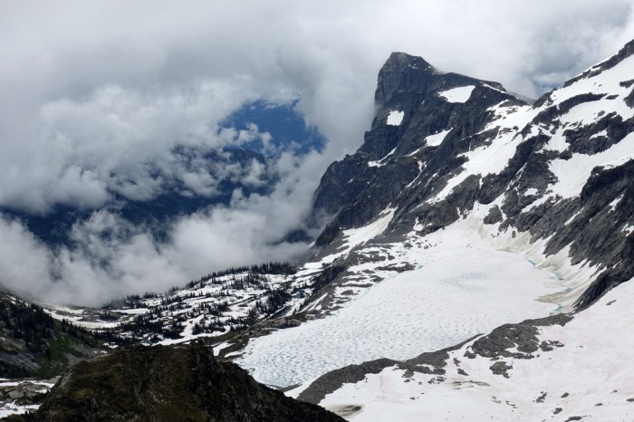 The next day we climbed Wolf’s Ears, a jagged peak on the east side of Gimli. The climb was more difficult, both because it’s more technical and because the weather was taking a turn for the worse. There was so much fog I didn’t take a single photo. On our way back to pack up our tents it began to rain hard. We saw that other climbers had arrived and a pair of them were on the classic route up Gimli without a realistic option of descending off the route. Good thing we chose a more manageable objective.