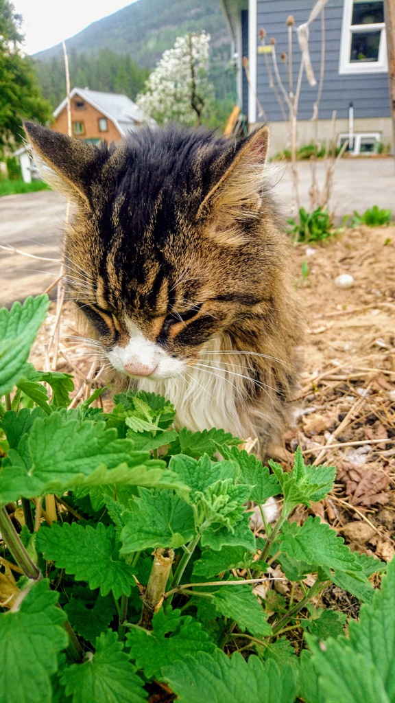 – Abril – Monte, el gato de mi madre, adora la primavera y aprovecha la oportunidad de comerse la creciente menta gatuna.