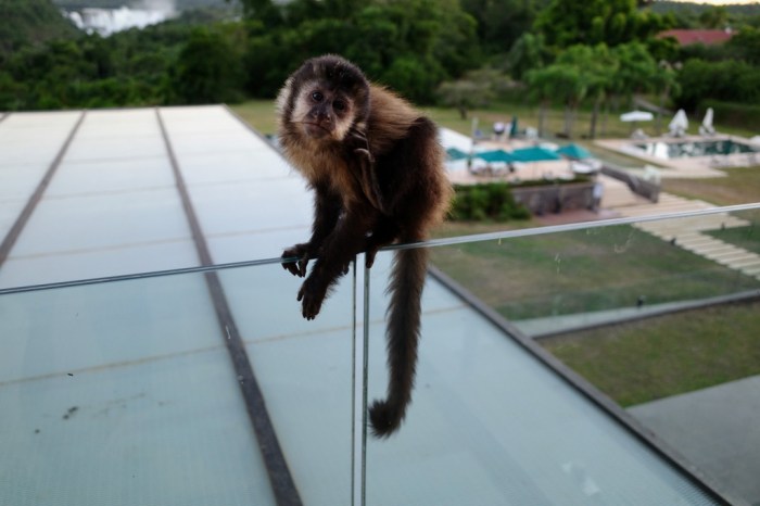 Por suerte, este mono no logró entrar en nuestra habitación y seguimos disfrutando de la vista de las cataratas con él.