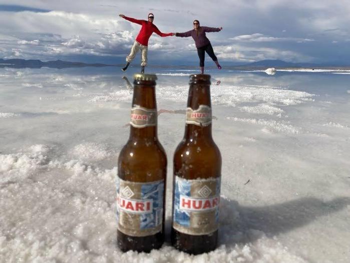 Después de pasar cuatro días en Potosí, fuimos al Salar de Uyuni. ¡Es una maravilla! Tuvimos mucha suerte de visitarlo durante la temporada de lluvias, cuando se convierte en el espejo más grande del planeta. No se puede distinguir el agua del cielo y el horizonte parece continuar hasta la infinidad. No tiene fin.