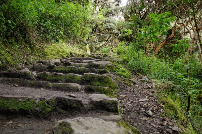 Este camino no es un sendero cualquiera. Más bien, es como si fuera la carretera de los Incas. Cada paso del camino está empedrado, incluso las subidas y bajadas más empinadas que se convierten en escaleras.