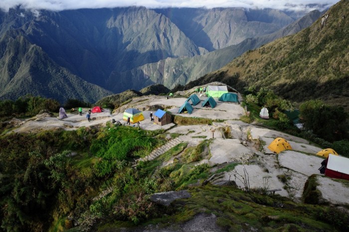 Another advantage of the slower paced option is staying at the highest campsite of the whole route. The views from up so high are really impressive. You’re high above Machu Picchu and the gateway town of Aguas Calientes.